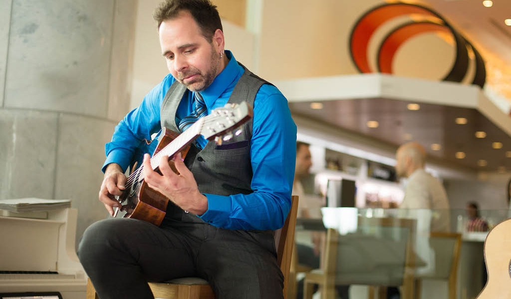 Meet Dave! This Ontario born artist has performed live in countless cities in the US, conducted clinics and has taught for The Berklee School of Music in Boston, Massachusetts and the National Guitar Workshop, Parker Guitars and Digitech/Johnson amplification. With a love for music since he was a young child, he’s worked hard to master his craft and bring live music to our Lobby Lounge!