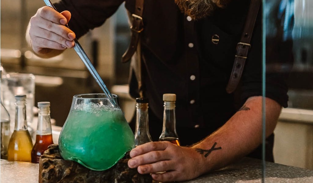 Botanist Bar: “Such bar-raising drinks emerge theatrically from the cocktail lab equipped with toys like a centrifuge, rotovap, a dehydrator, and dry ice equipment… Immaculate bar service includes an “amuse Booze” while your order germinates.”
