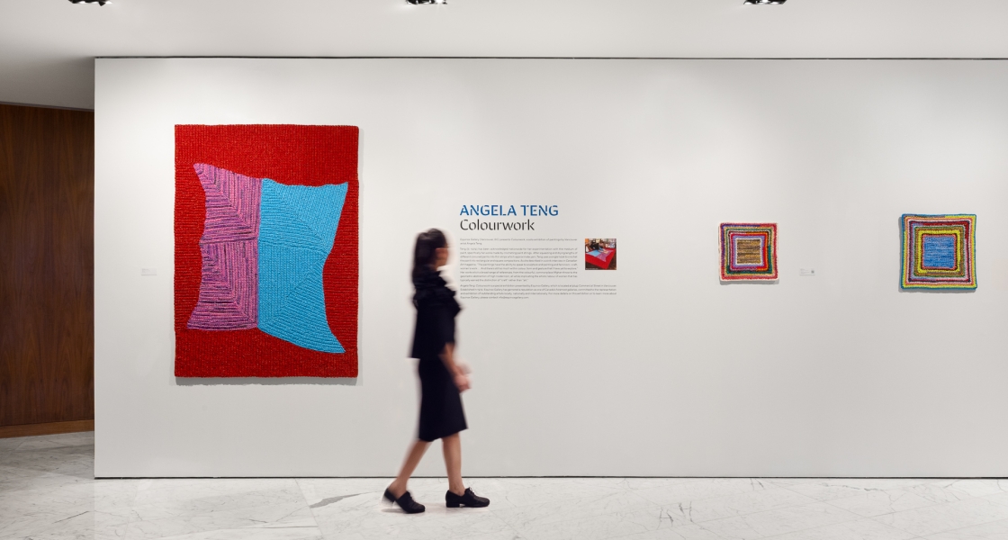 Ever heard of crocheting with paint? It’s not a new TikTok trend, it’s the innovative artistry of Angela Teng – a Vancouver-based artist and our latest exhibitor at The Pacific Gallery at Fairmont Pacific Rim.