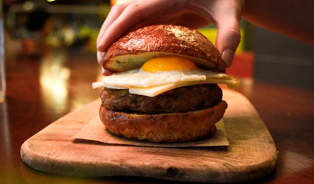 Made on a brioche bun, topped with a fried egg, aged cheddar, caramelized onions, jalapeno + cheddar sausage, and finished with chipotle mayo. Intended for those who aren’t afraid to #getyolked and get their hands messy, this mouth-watering creation will be sure to satisfy even the toughest mornings.