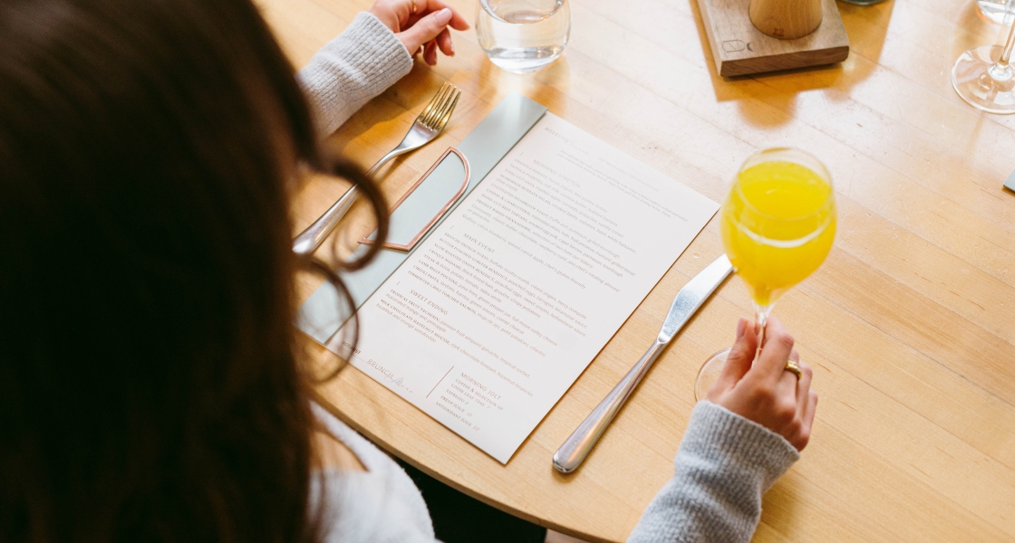Upon arrival, you’ll be greeted with a glass of sparkling. Once seated, choose a hand crafted cocktail from our creative menu. Handpick your three courses from our Morning Stretch, Main Event, and Sweet Ending.