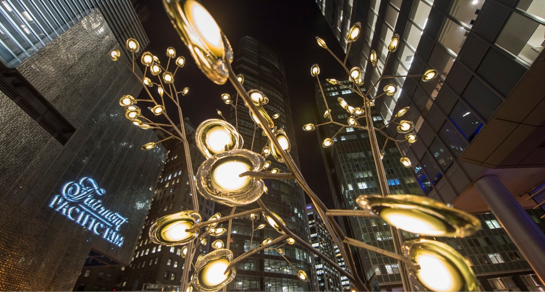 These “trees” rise out of a landscape constructed of burnt wood planks and form an immersive canopy of light that reaches up to 6 m in height. Bench platforms and higher mounds in the landscape serve the dual purpose of protecting the trees from vehicles, providing refuge to visitors and creating informal meeting places. Bocci numbers each of its works, and 16 was first envisioned in 2007, but the firm lacked the technical expertise and glass knowledge to bring it to fruition, until now. Bocci Creative Director Omer Arbel explores the intrinsic mechanical, physical, and chemical qualities of materials as fundamental departure points for making work. All Bocci designs are developed, engineered, and fabricated in-house, with headquarters based in Vancouver.
