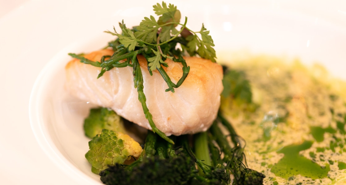 Chef James Town, Banquet Chef at Fairmont Pacific Rim and former competitor of Junior Culinary team, has prepared a Pan-Seared Coastal Halibut in honour of Hot Chefs & Cool Jazz happening this Friday, April 19.
