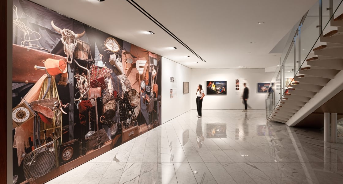 Presented on the main floor of the Pacific Gallery within the Fairmont Pacific Rim lobby, are three works from Hannah’s project, Blackwater Ophelia, inspired by the 1852 painting Ophelia, a famous painting by the British realist painter Jon Everett Millais, that pays homage to the natural world. On the second floor, a large-scale installation based on Picasso’s ‘Guernica’, one of the most iconic anti-war paintings of all time, is displayed alongside selected works from Hannah’s series ‘The Decameron Retold.’ In each elaborately staged piece, the presence of props, stage supports and hand-painted elements highlight the intricacies of each work’s construction, emphasizing the process of creating each image.