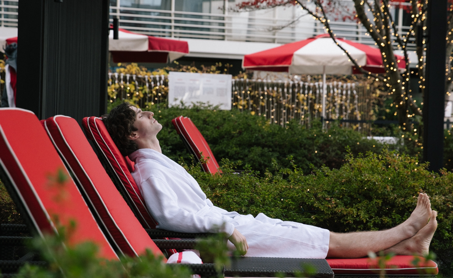 Your journey to relaxation continues with access to The Nordic Spa, Vancouver’s ultimate wellness retreat. Our self-guided outdoor thermal spa offers an immersive healing experience that encompasses the essence of the West Coast, with a cedar plank sauna, cold plunge baths, hot tub and relaxation areas