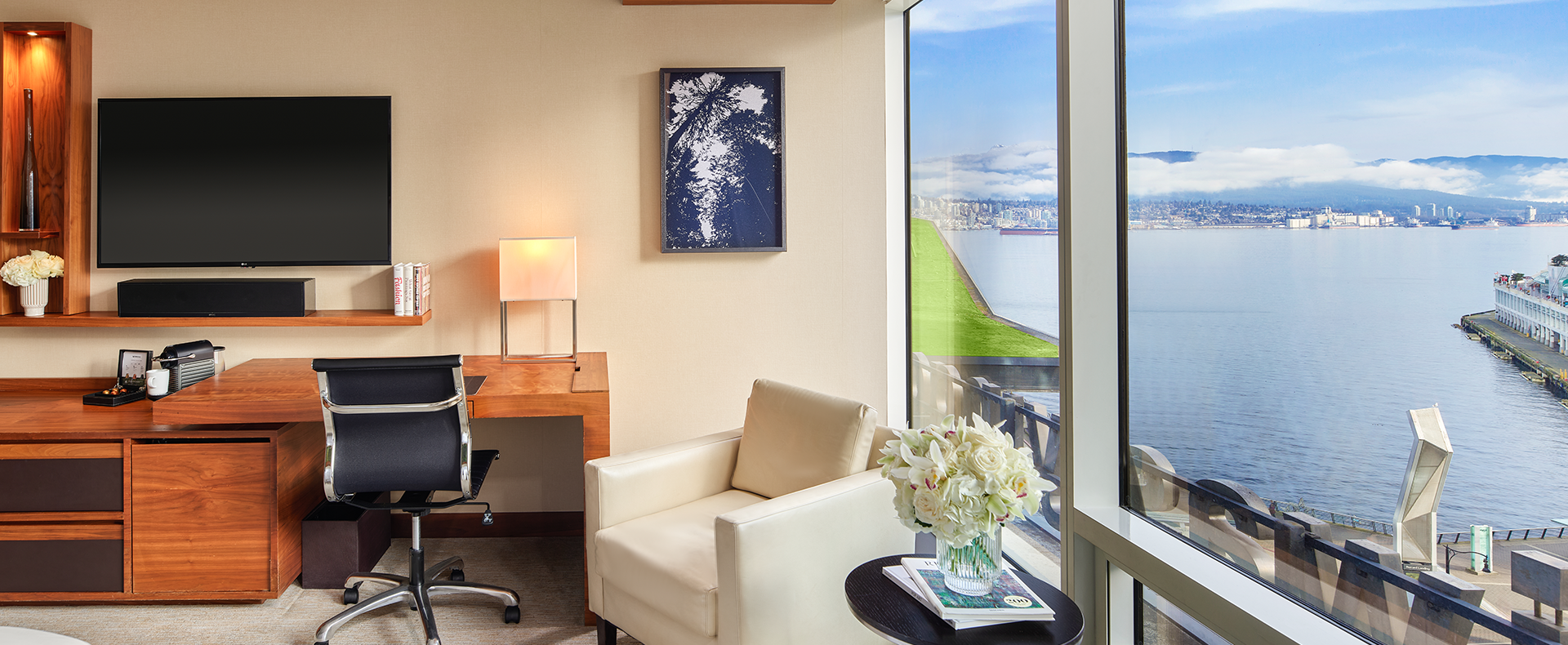 Our Deluxe Partial Harbour View rooms are elegantly appointed with a modern contemporary décor and luxurious over-sized marble spa bathrooms with spa shower or spa shower/deep soaker tub combination. Seaplanes and sailboats are some of the “traffic” that can be seen from these rooms. Choose from one King or two Queen sized beds.
